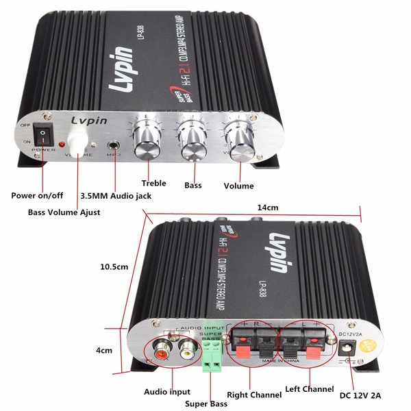 AMPLI MINI HIFI STEREO POWER AMPLIFIER TREBLE BASS BOOSTER 12V