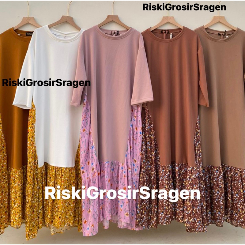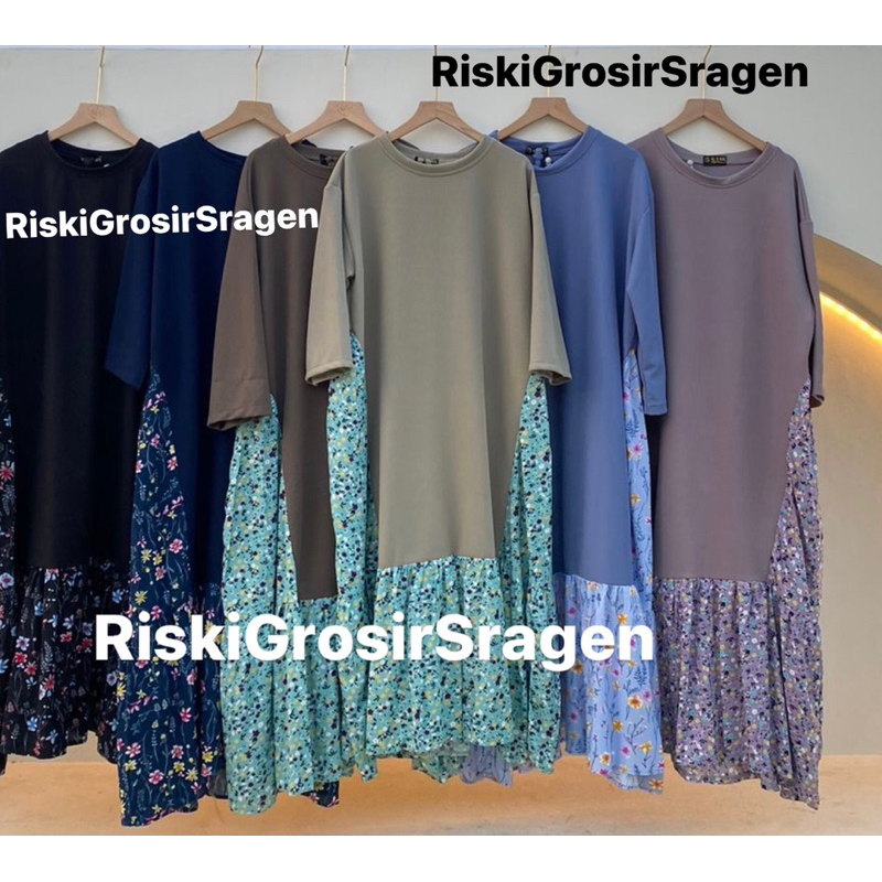LUPPY MIDI DRESS WANITA KOMBINASI MOTIF RAYON BUNGA JIZZY DRESS KNIT JUMBO FASHION DEWASA KEKINIAN