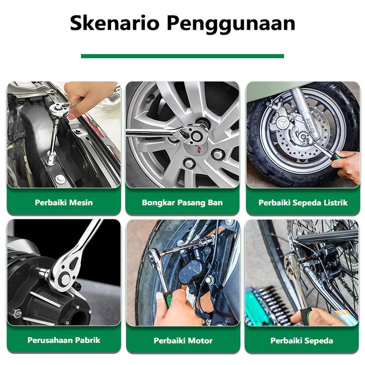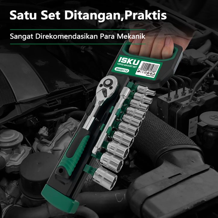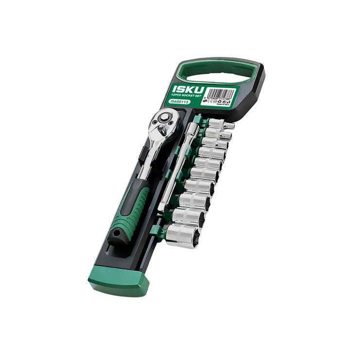 ISKU kunci sok socket set 12 pcs kunci pas ratchet 1/4 inch 24gigi wrench set bahan chrome vanadium 8-14mm mata sok