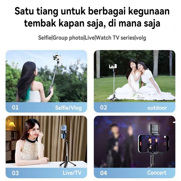 Tripod Remote Bluetooth Lampu Kecantikan Selfie Stick Mini Size Tongkat Selfie 3 Kaki