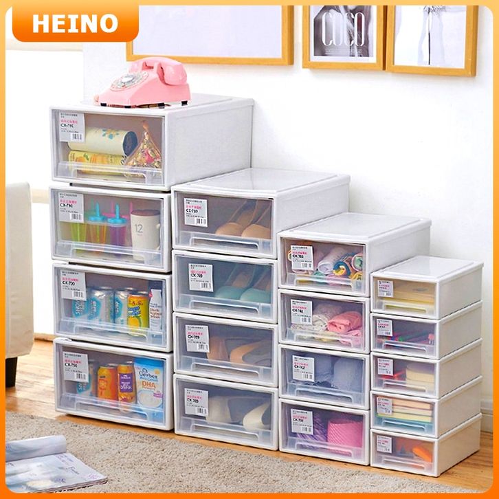 PROMO HEINO Lemari Laci Plastik Susun Transparan Multifungsi Kotak Penyimpanan Pakaian Container Kabinet Drawer Storage