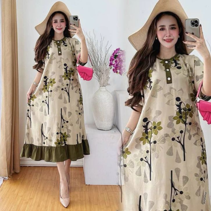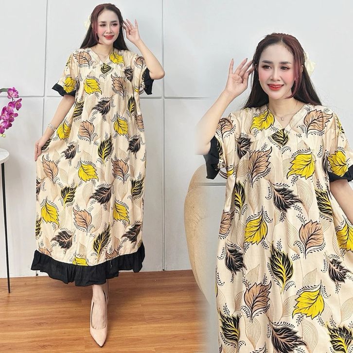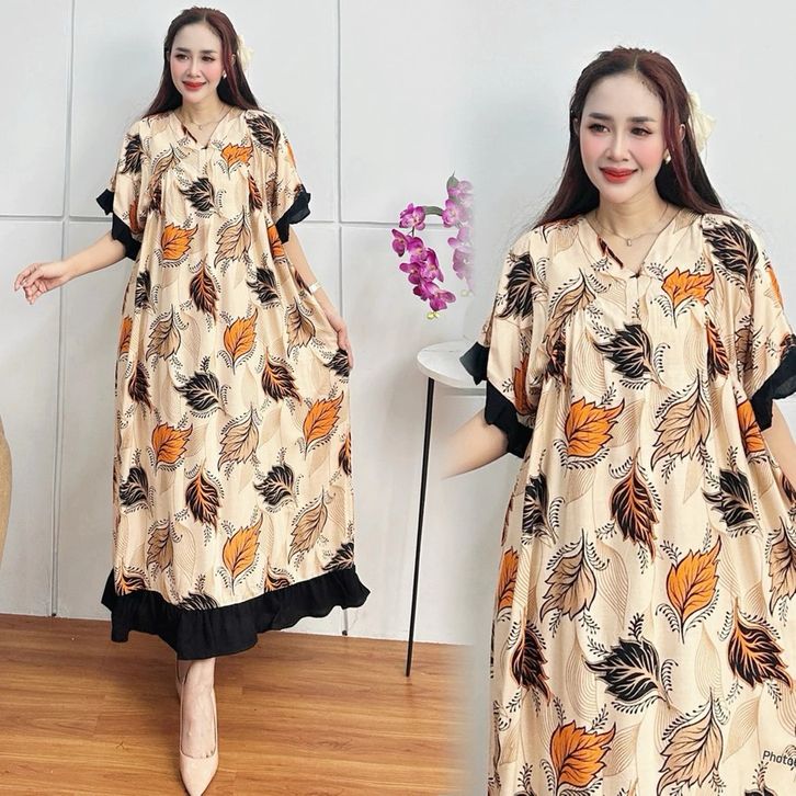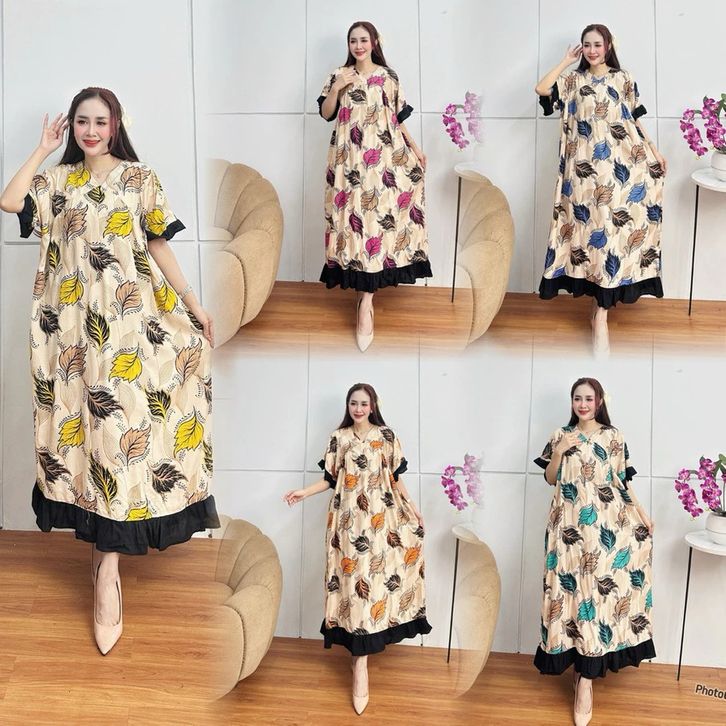 Daster Wanita Kekinian Bahan Rayon Premium Daster Wanita Jumbo Ld 120 Daster Kekinian Busui Kancing Depan Motif Teratai