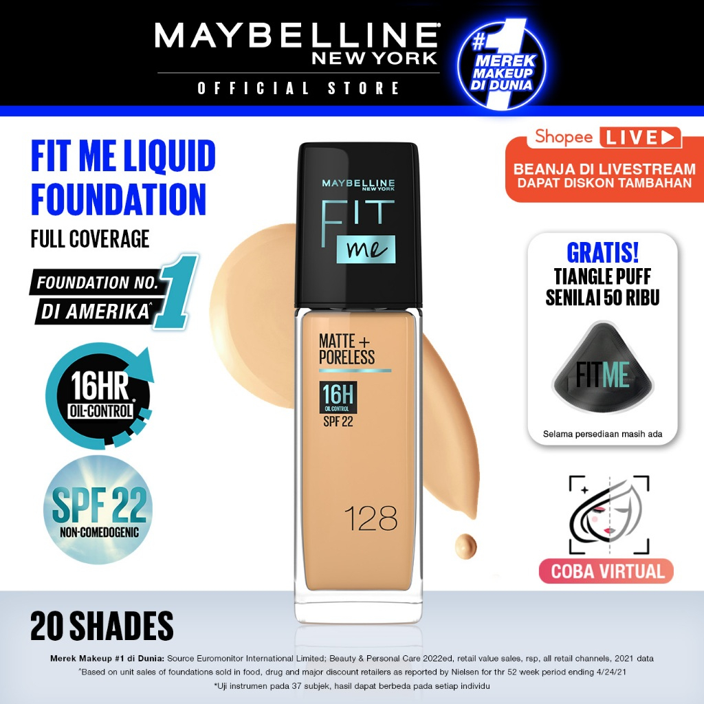 MAYBELLINE FIT ME MATTE + PORELESS LIQUID FOUNDATION MAKE UP 30ML - MAKEUP RINGAN FULL COVERAGE 16HR OIL CONTROL