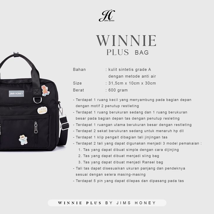 JIMS HONEY - WINNIE PLUS BAG - SLING BAG - HAND BAG - BACKPACK - ORIGINAL - OFFICIAL STORE ID - TERBARU - KEKINIAN - DEW