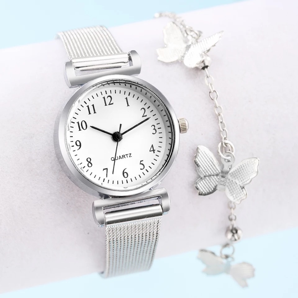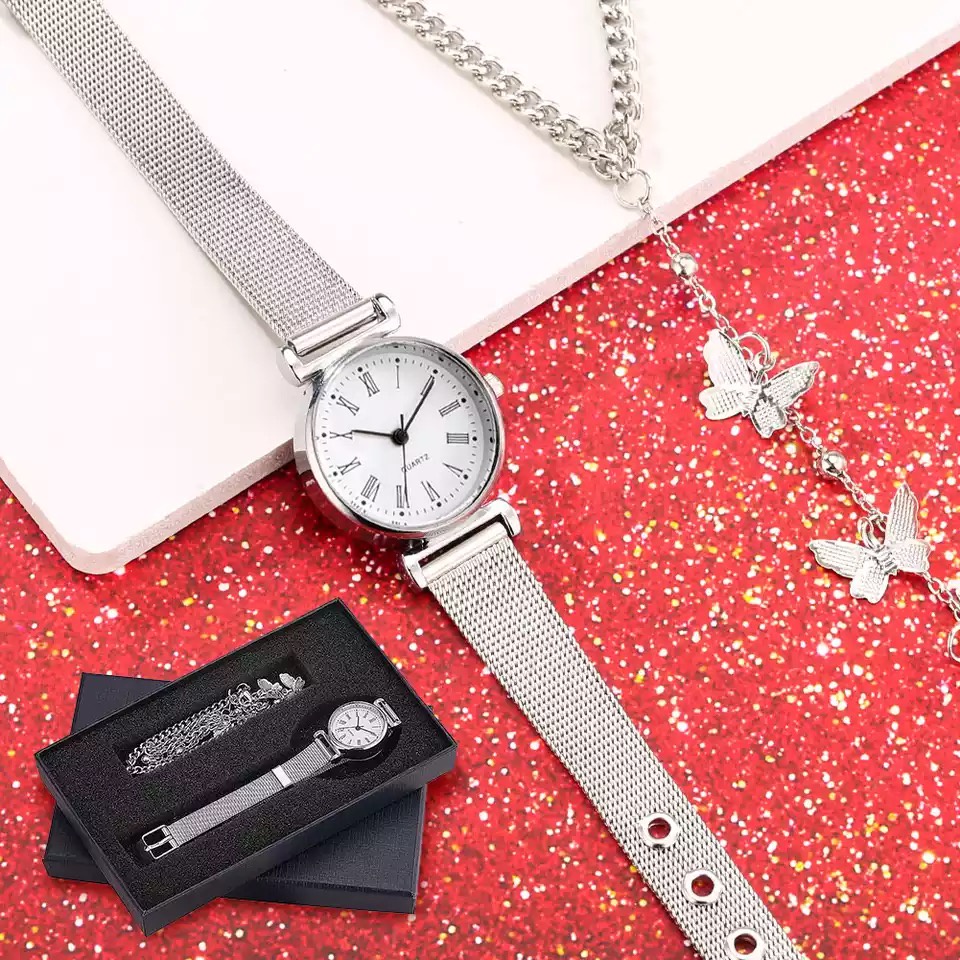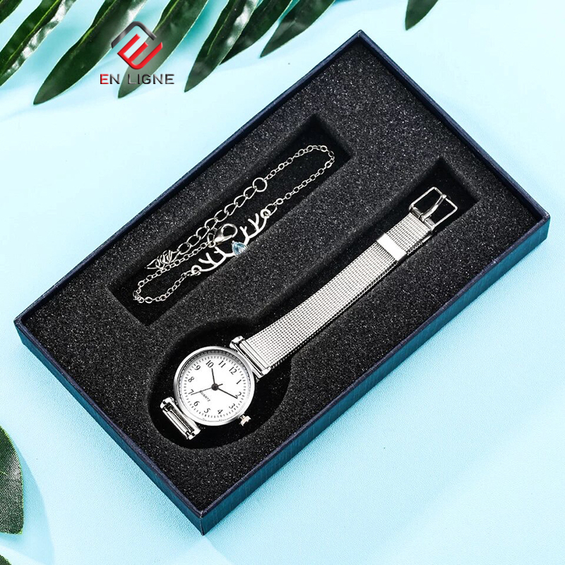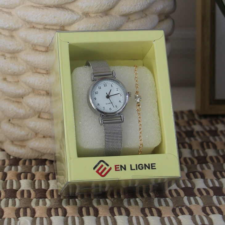 ENLIGNE - JAM TANGAN FASHION WANITA SET GELANG BONUS BOX - JAM TANGAN WANITA QUARTZ STAINLESS TALI PASIR EL661
