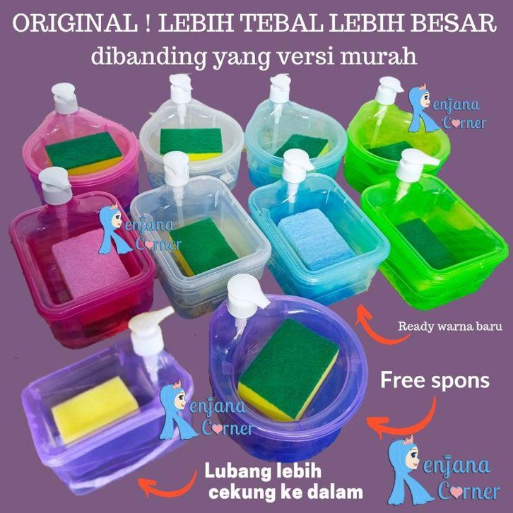 Tempat Sabun Cuci Piring Viral Unik / Wadah Sacupir Bulat Kotak / Soap Pump Dispenser Sabun Cuci Piring Cair Free Spons