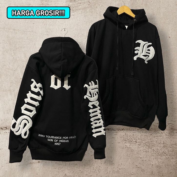 Sweater Hoodie Jumper Pria Model Bordir Sherpa Logo S&H Hitam Hodie Pria Hoodei Hoodie Distro Pria M, L, XL, XXL Unisex