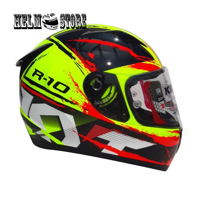 HELM KYT R10 MOTIF #2 YELLOW FLUO BLACK KACA FLAT CLEAR KYT R 10 FULL FACE SNI DOT