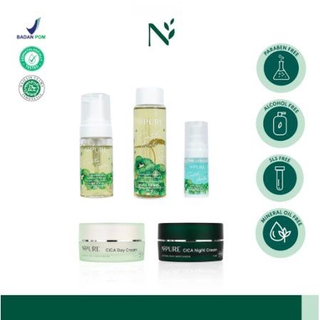 NPURE Cica Face Wash - Face Toner - Essence - Primer Serum - Day Cream - Night Cream - Acne Spot / FLAWLESS COSMETICS