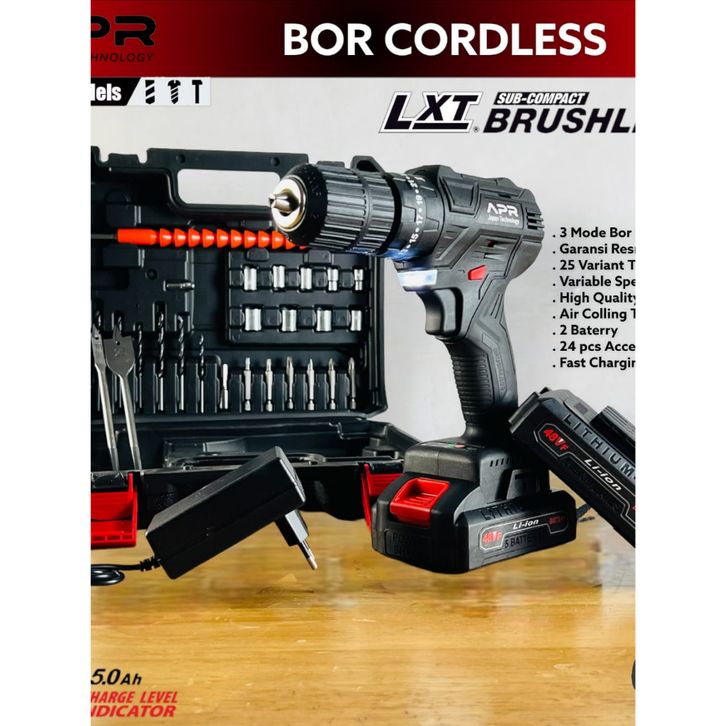 BOR CORDLESS APR japan A 48V 13MM chuck besi impact drill BLACK edition fullset mesin bor baterai terkuat