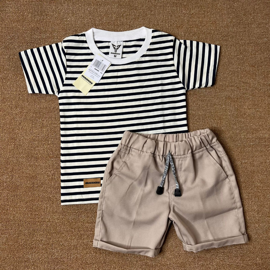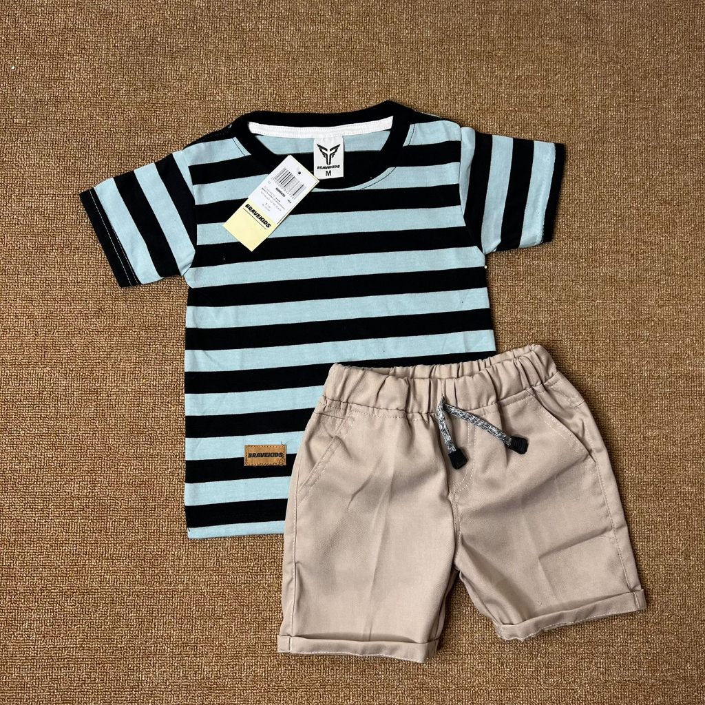 BRAVEKIDS - BROADSTRIPE SETELAN ANAK KAOS DAN CELANA COTTON COMBED 24S SABLON PLASTISOL