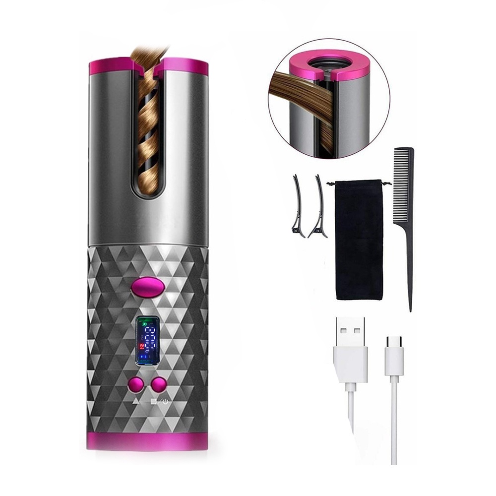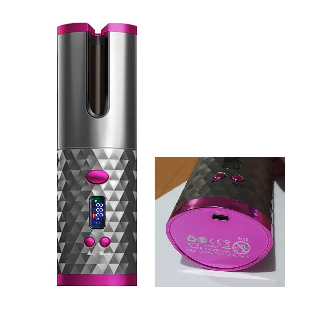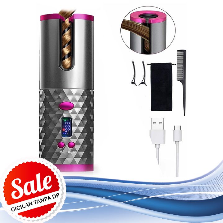 BARU/FREE ONGKIR HAIR CURLY AUTOMATIC WIRELESS CURLER USB PORTABLE RECHARGEABLE ROTATING CURLING IRON
