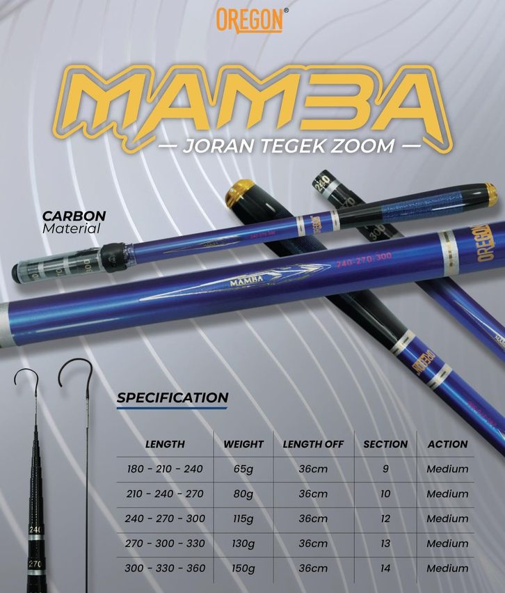 Joran Tegek Oregon Mamba ( Silincah Zoom ) Carbon Hard Action Ruas Pendek 180 210 240 270 300 330 360