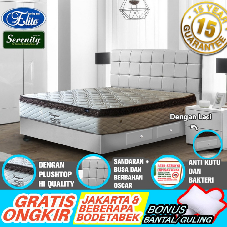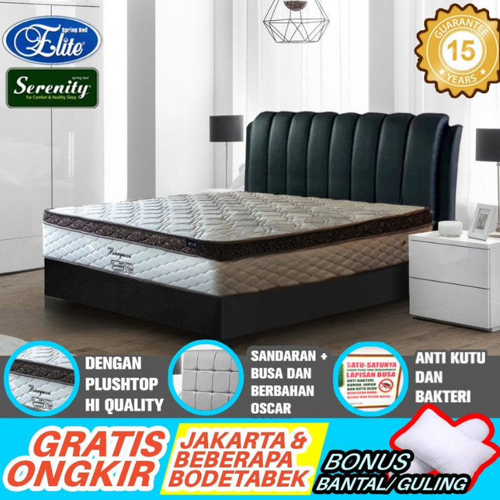 KASUR SET SPRING BED ELITE SERENITY PLUSHTOP 120X200 160X200 180X200 RANJANG MATRAS PLUSH TOP