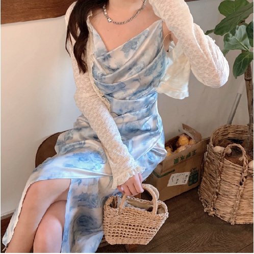 ROSY BLUE MIDI DRESS WITH COWL NECK BUNGA BIRU - DRESS CASUAL KASUAL / KOREAN DRESS KOREA FASHION OUTFIT
