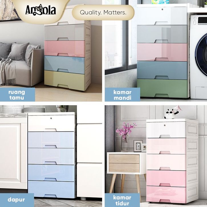 Angola Lemari Plastik Pakaian 5 Tingkat C05/C68/G15 Laci Susun Storage Cabinet Plastik Rak Susun Penyimpanan Baju