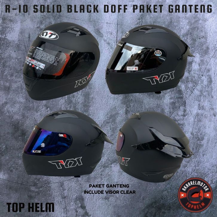 HELM KYT R10 SOLID BLACK DOFF PAKET GANTENG/KYT FULL FACE R10 SOLID BLACK DOFF