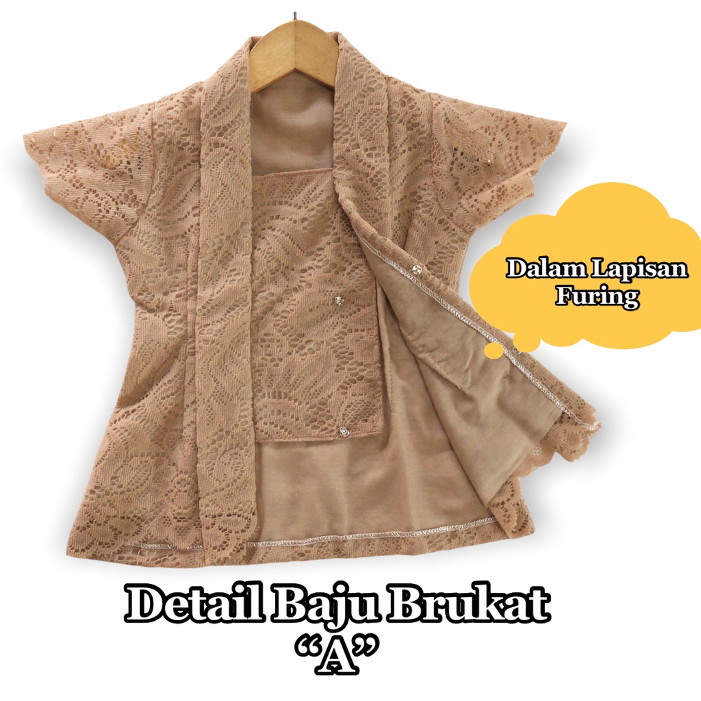 KEBAYA ANAK / KUTUBARU ANAK DAN BAYI BRUKAT WARNA COKLAT MUDA+ROK JARIK