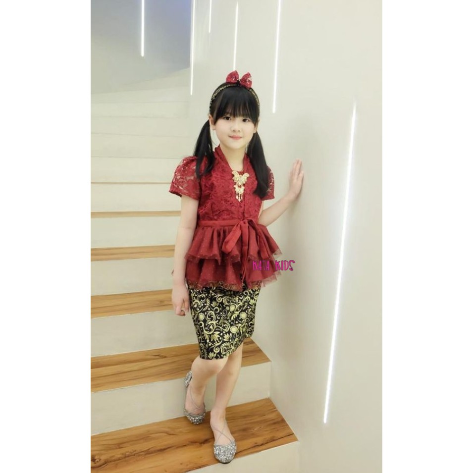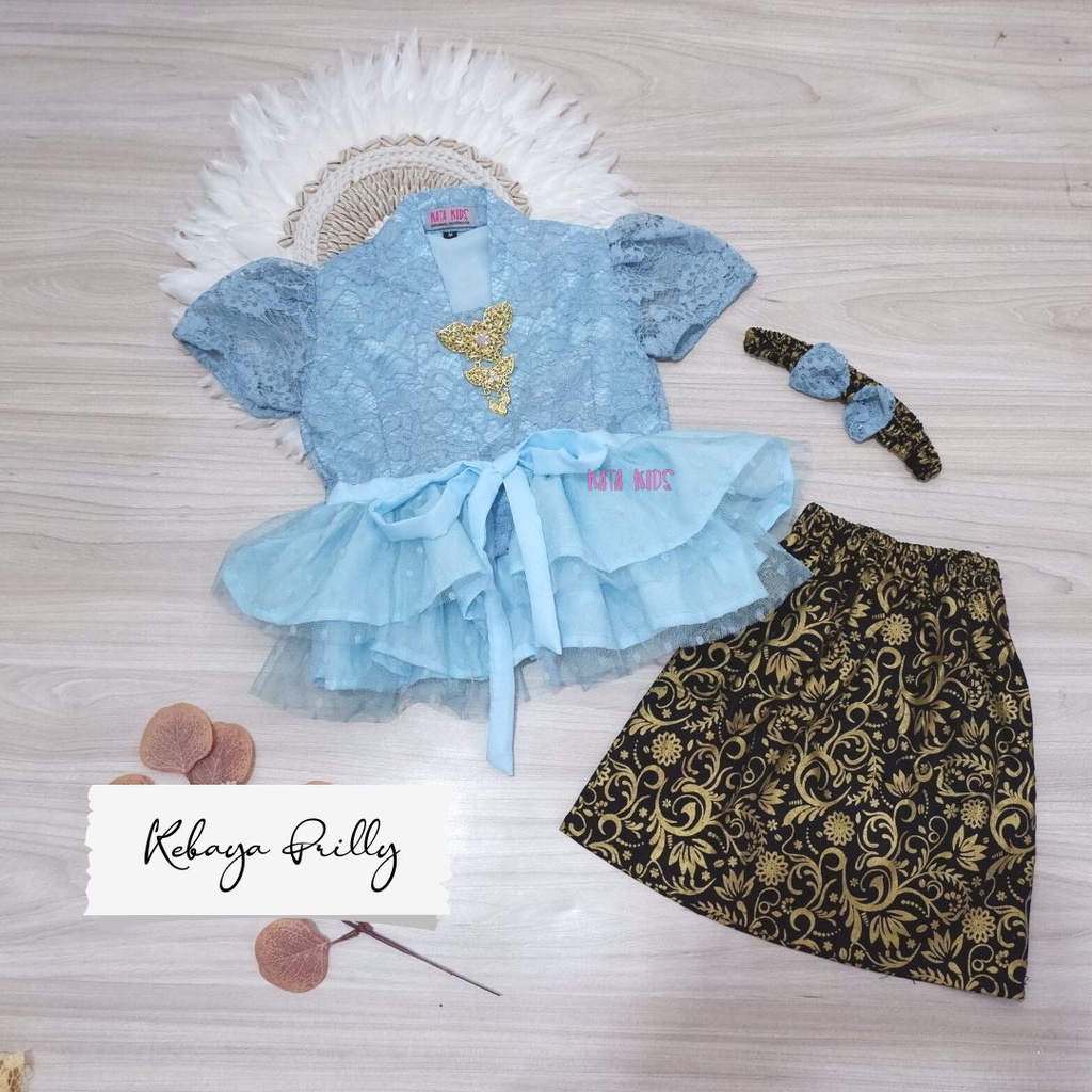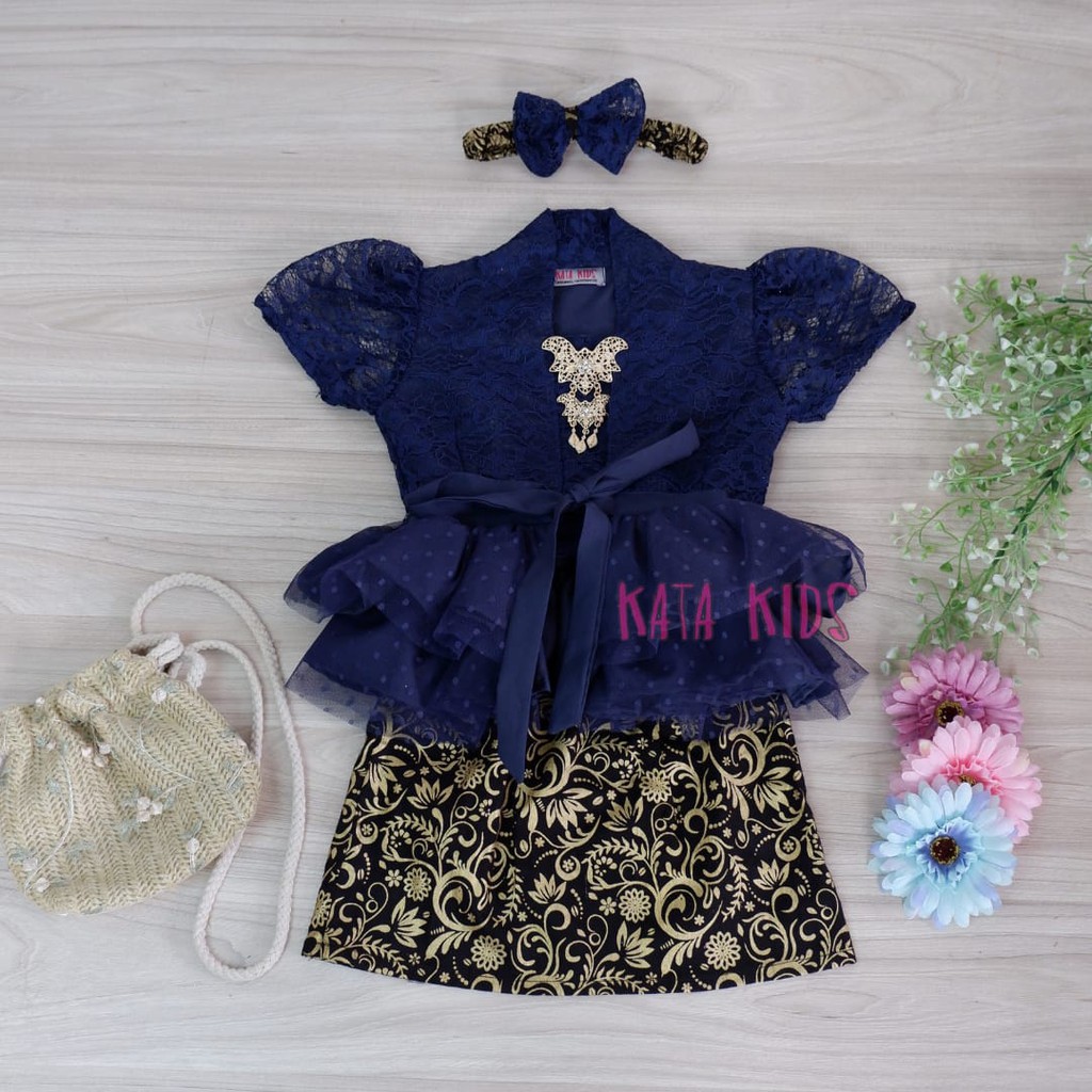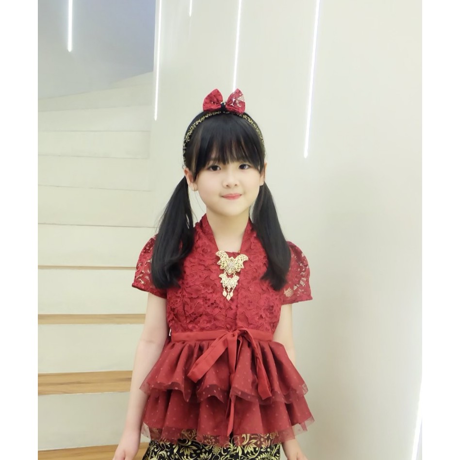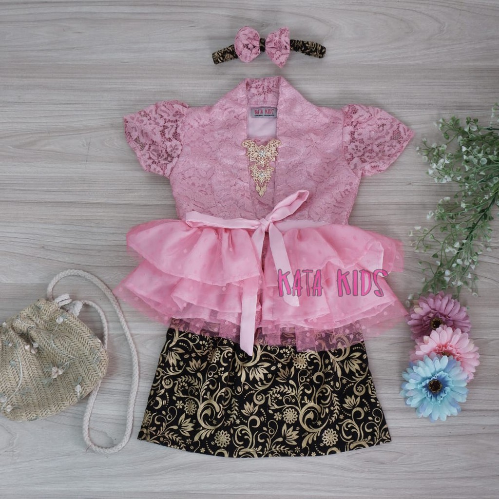 KEBAYA MODERN ANAK MAHESWARI BROKAT MIX TILLE DOTY ROK HITAM ORIGINAL BY KATA KIDS