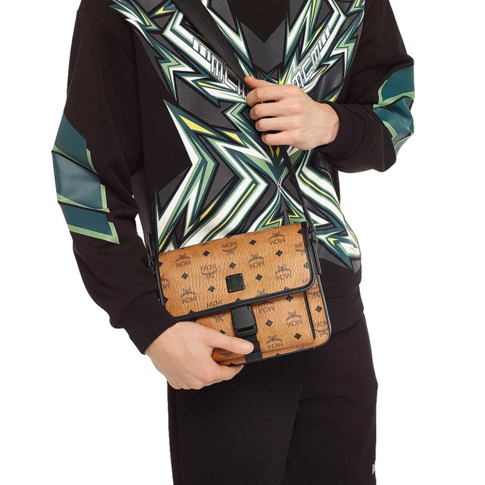 MCM SMALL KLASSIK MESSENGER BAG IN VISETOS COGNAC