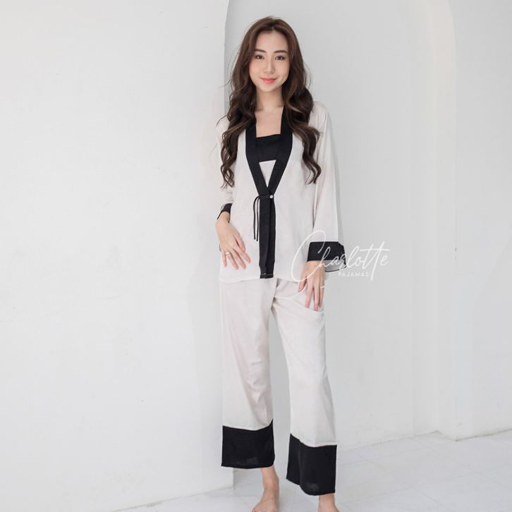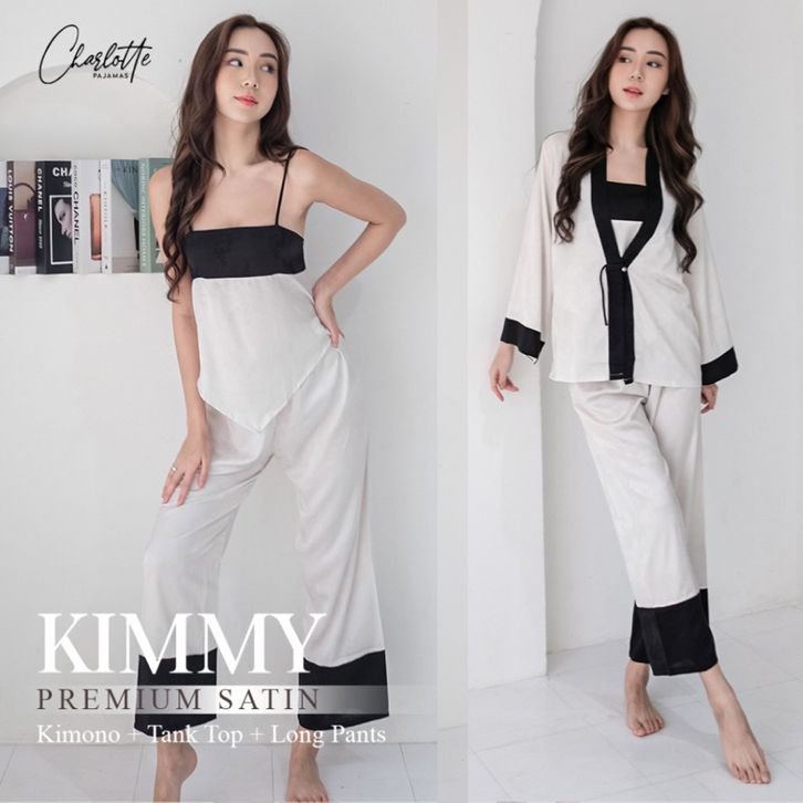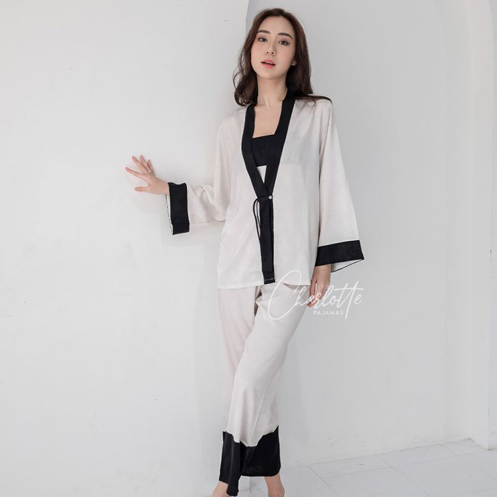 CHARLOTTE - Kimmy set 3in1 Baju Tidur Tanktop Outer Celana Panjang Lingerie Setelan Seserahan Premium