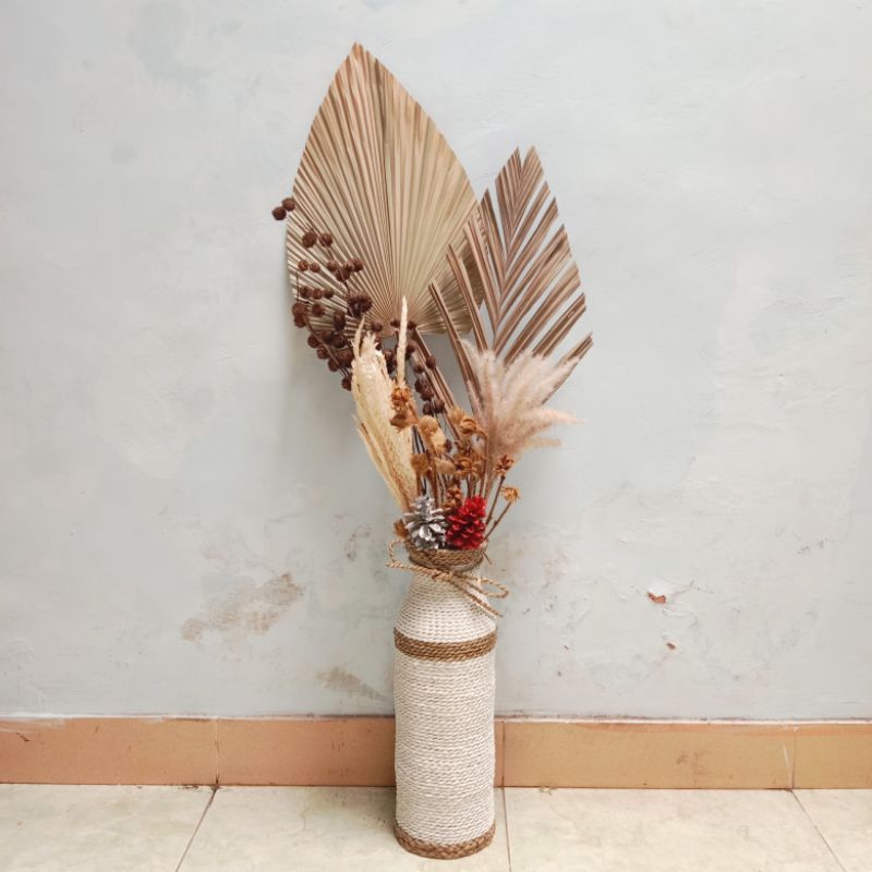 PAKET BUNGA KERING MURAH DENGAN VAS 40 CM AESTHETIC UNTUK HIASAN