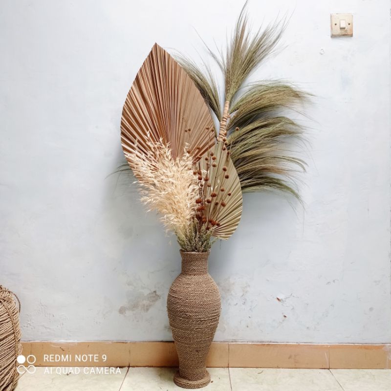 PAKET HEMAT RUSTIC DECORATION | PAKET BUNGA KERING DAN VAS TINGGI 50 CM, COCOK UNTUK HIASAN SUDUT RUANGAN