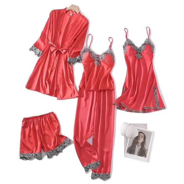 baju tidur 5 in 1 - piyama wanita import pakaian tidur kimono lingerie satin set pajamas