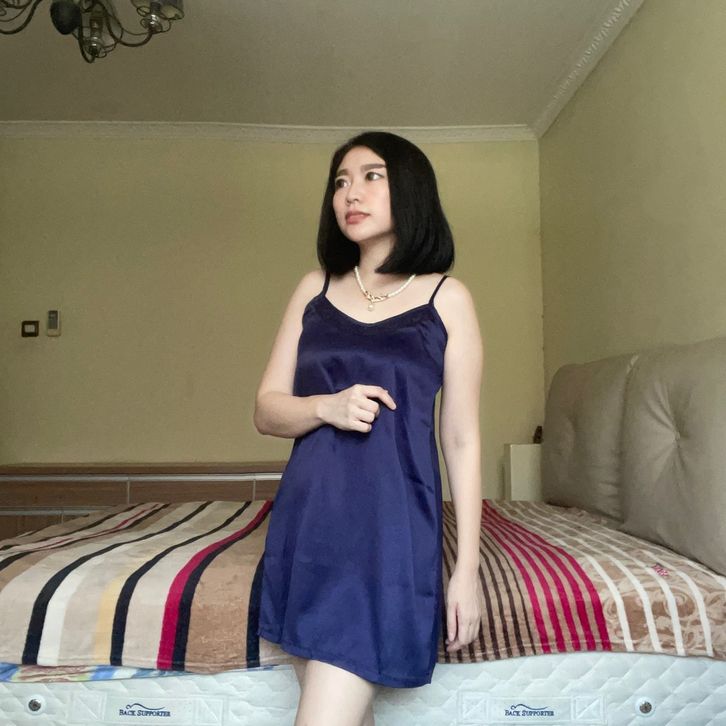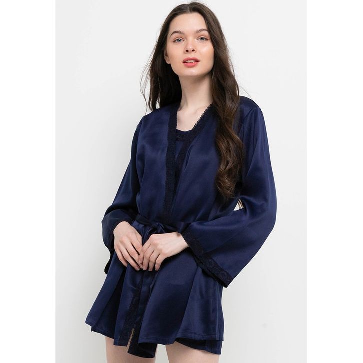 A2101 71171 New Product Launch Baju Tidur Wanita Sexy Tanktop Kimono Satin Anne Wintours Navy Sexy