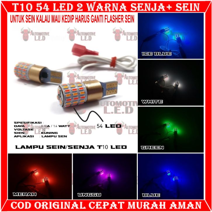 ORIGINAL LAMPU LED SEIN MOTOR T10 54 MATA LED DAJJAL 2 IN 1 2 WARNA LAMPU SENJA MOTOR LAMPU SEIN MOTOR