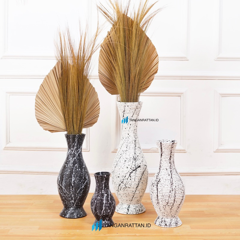 GUCI ROTAN / VAS BUNGA ROTAN MOTIF GRANIT ABSTRAK FINISHING CAT DUCO EXPORT