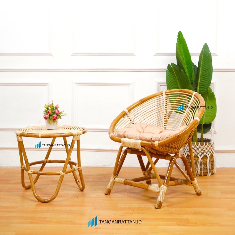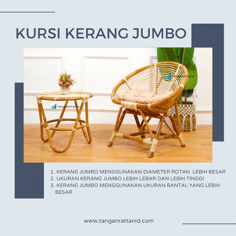 KURSI TERAS KERANG ROTAN JUMBO DAN MEJA 1 SET BANTAL / KURSI TAMU ROTAN MINIMALIS FINISHING