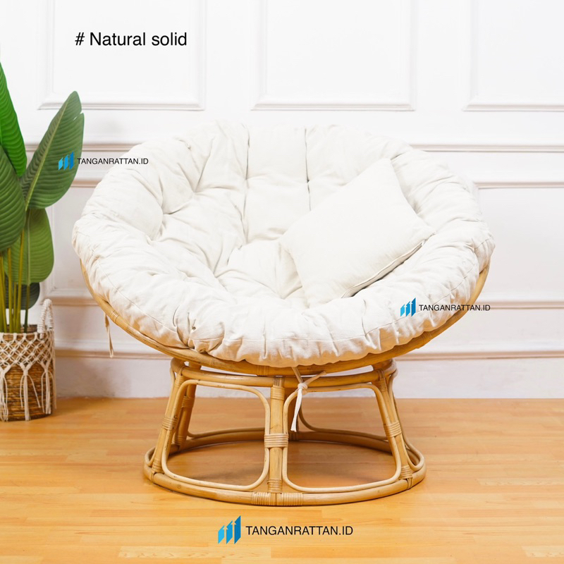 KURSI SANTAI PAPASAN ROTAN HITAM SOLID DENGAN KASUR DAN BANTAL / KURSI MINIMALIS PARABOLA BULAT FINISHING SOLID