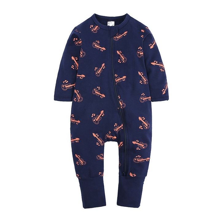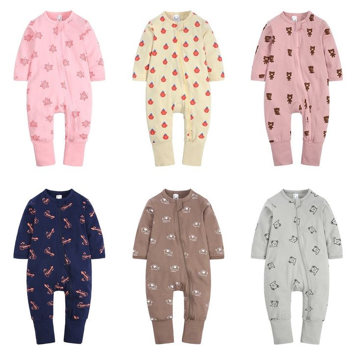 Kids Tales Bayi Lengan Panjang Katun Jumpsuit Baru Lahir Ritsleting Ganda Piyama unisex Pola Cetak Merangkak Pakaian un