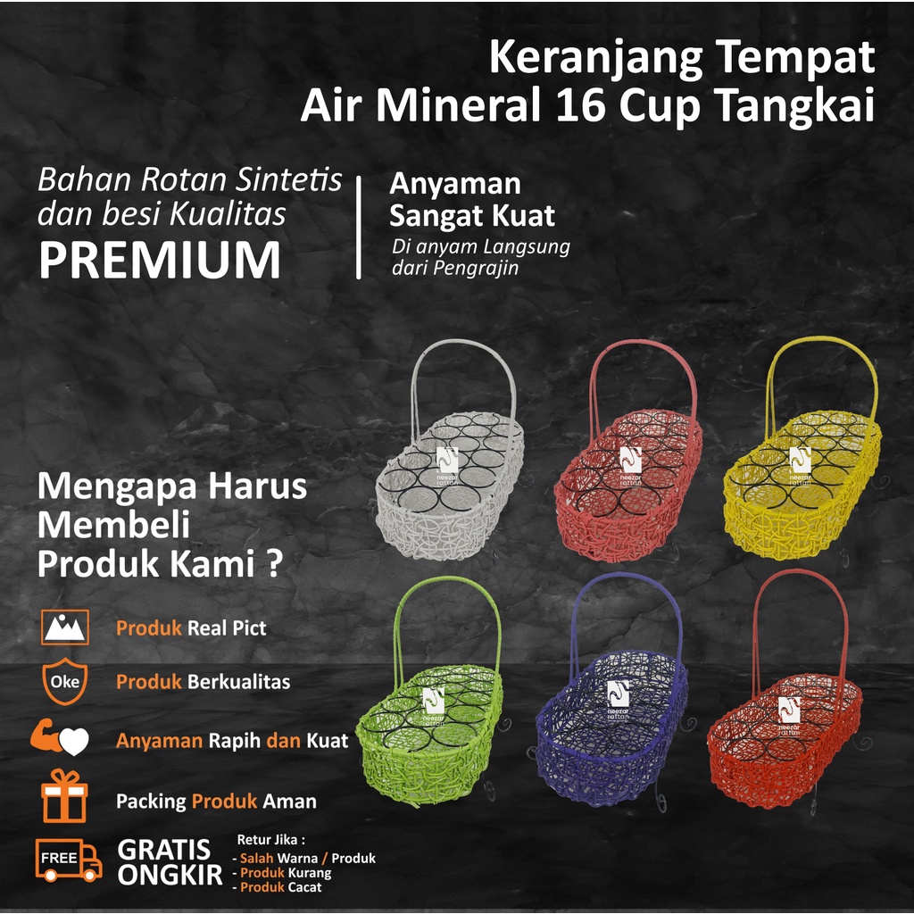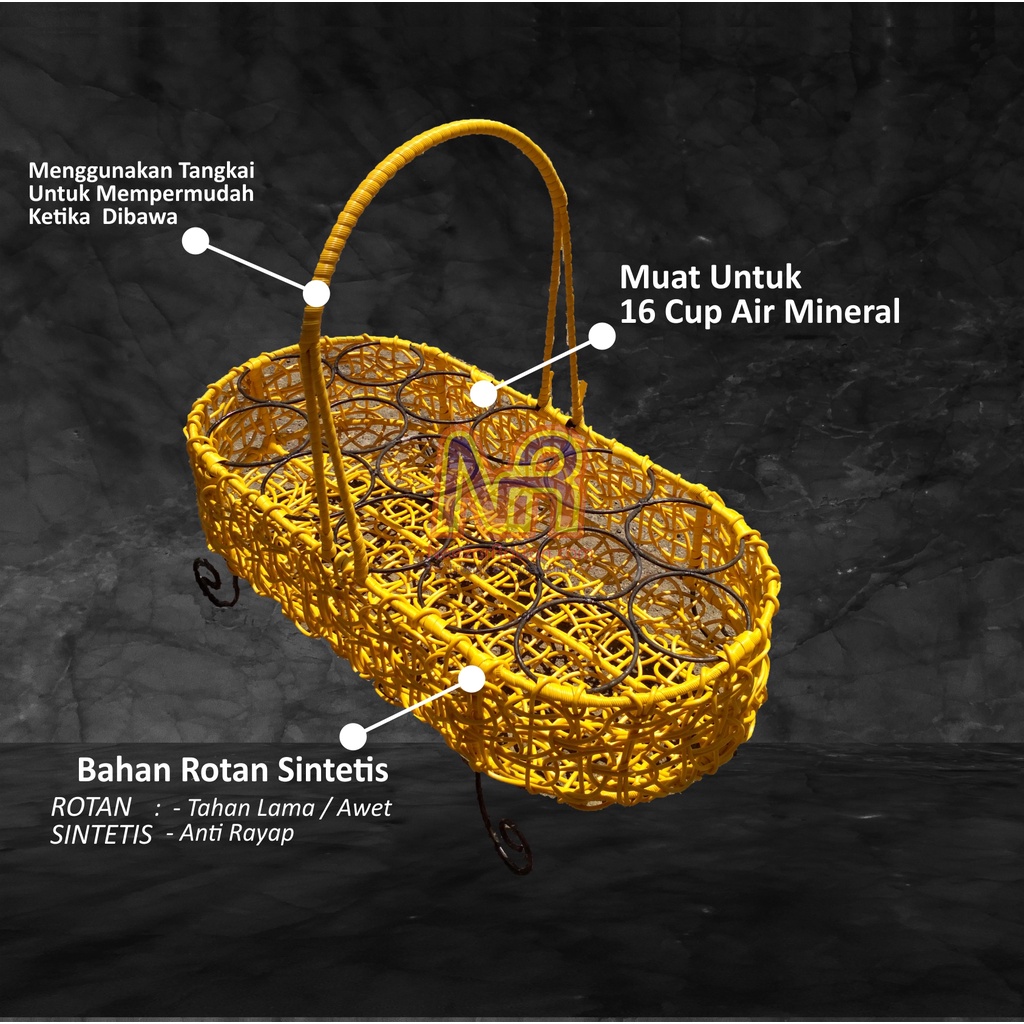 KERANJANG AIR MINERAL, TEMPAT AQUA GELAS SINTETIS BREKELE 16 CUP PAKAI TANGKAI GAGANG