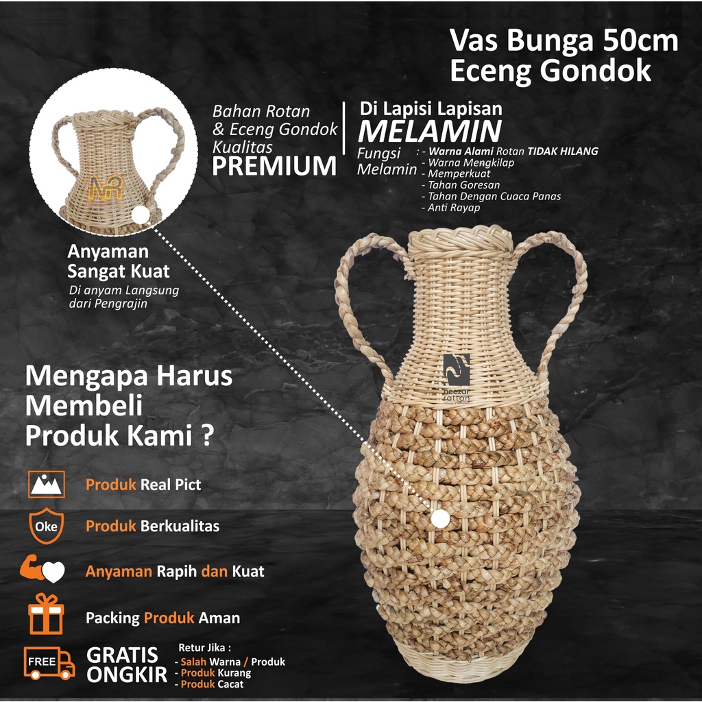 VAS POT GUCI TEMPAT BUNGA DARI ROTAN TINGGI 50 CM & 60CM ROTAN SINTETIS ECENG GONDOK