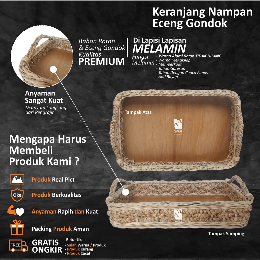 NAMPAN ANYAMAN ECENG GONDOK BAKI WADAH SAJI ROTAN KOTAK NAMPAN LAMARAN GUNTING PITA