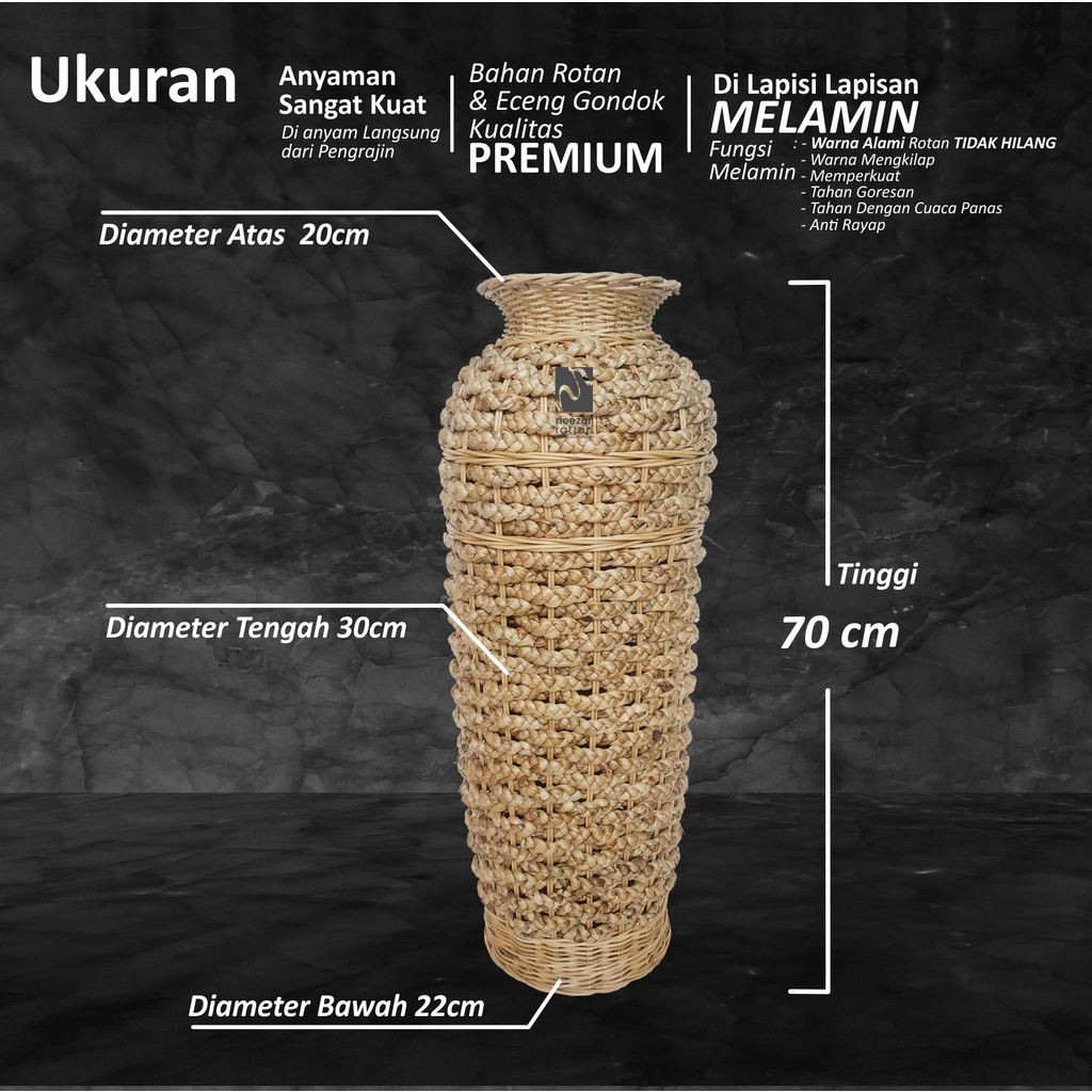 VAS POT GUCI TEMPAT BUNGA DARI ROTAN TINGGI 70 CM 80 CM ECENG GONDOK