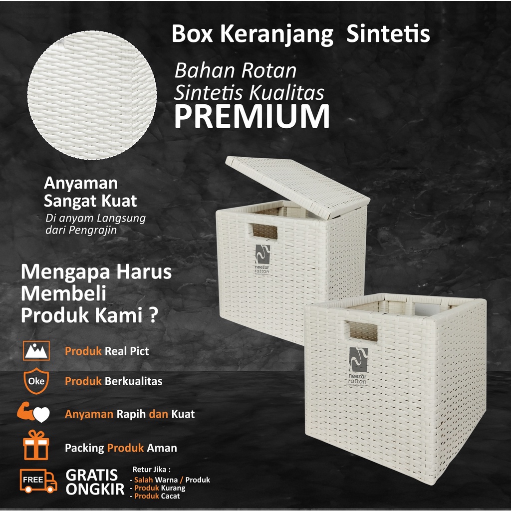 KERANJANG KOTAK BOX ROTAN (30X25X30) TANPA TUTUP