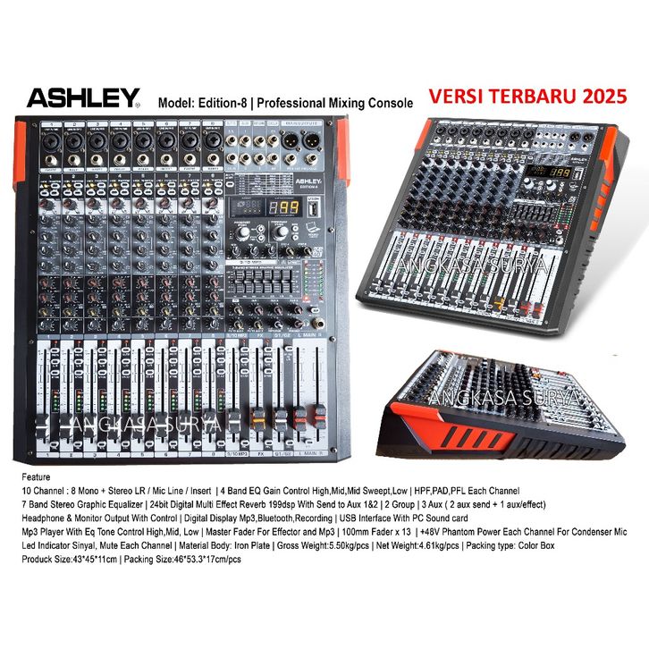 [Star] MIXER ASHLEY EDITION8 ORIGINAL / MIXER AUDIO ASHLEY EDITION 8 BARU EFFECT REVERB 199 DSP , HPF, LPF, PAD