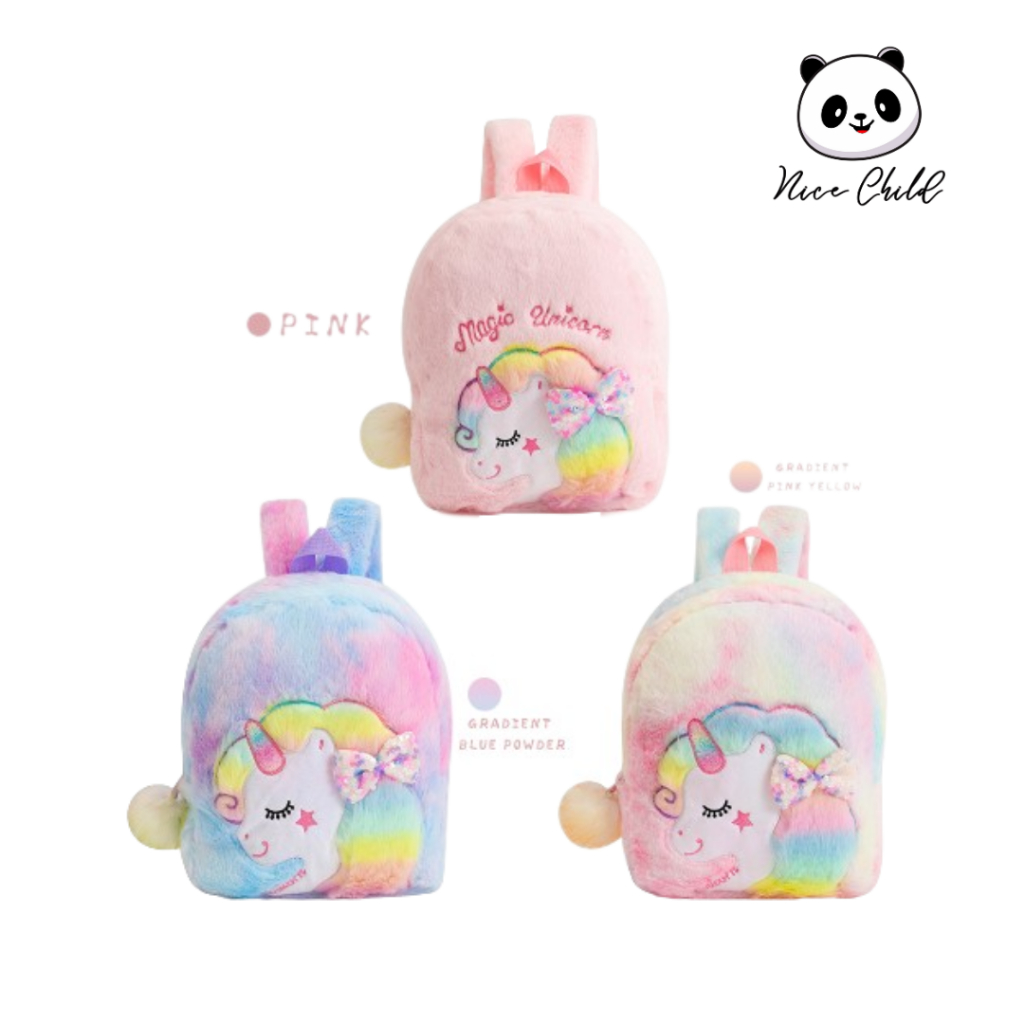 NICE CHILD TAS RANSEL ANAK SEKOLAH KARAKTER UNICORN MODEL BULU HALUS