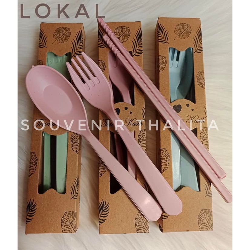 SOUVENIR 100 PCS TRAVEL SET LOKAL SENDOK GARPU SUMPIT KEMASAN BOX