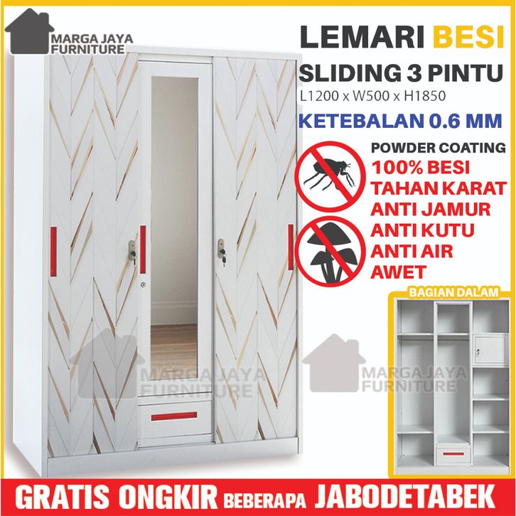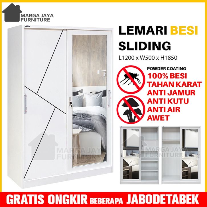 Lemari Pakaian BESI JUMBO Sliding 2 / 3 Pintu Wardrobe Metal Baju Murah Anti Rayap Anti jamur Tahan Air Lebih Tahan kar