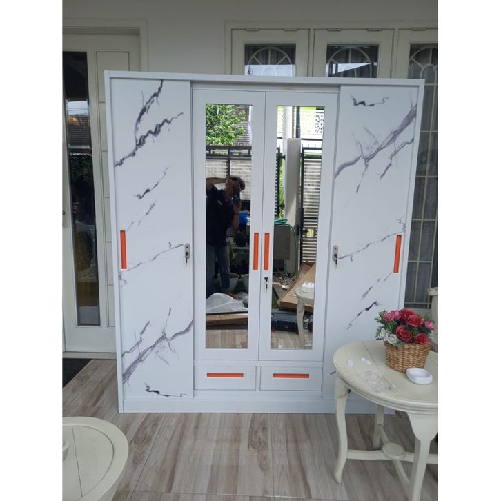 Lemari Baju Besi Sliding XR-425- Lemari Baju Sliding - Lemari baju 4 pintu - Lemari besi jumbo