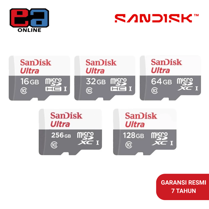 SANDISK microSDHC / microSDXC Ultra Card 16GB / 32GB / 64GB / 128GB / 256GB UHS-I Class 10 - QUNR