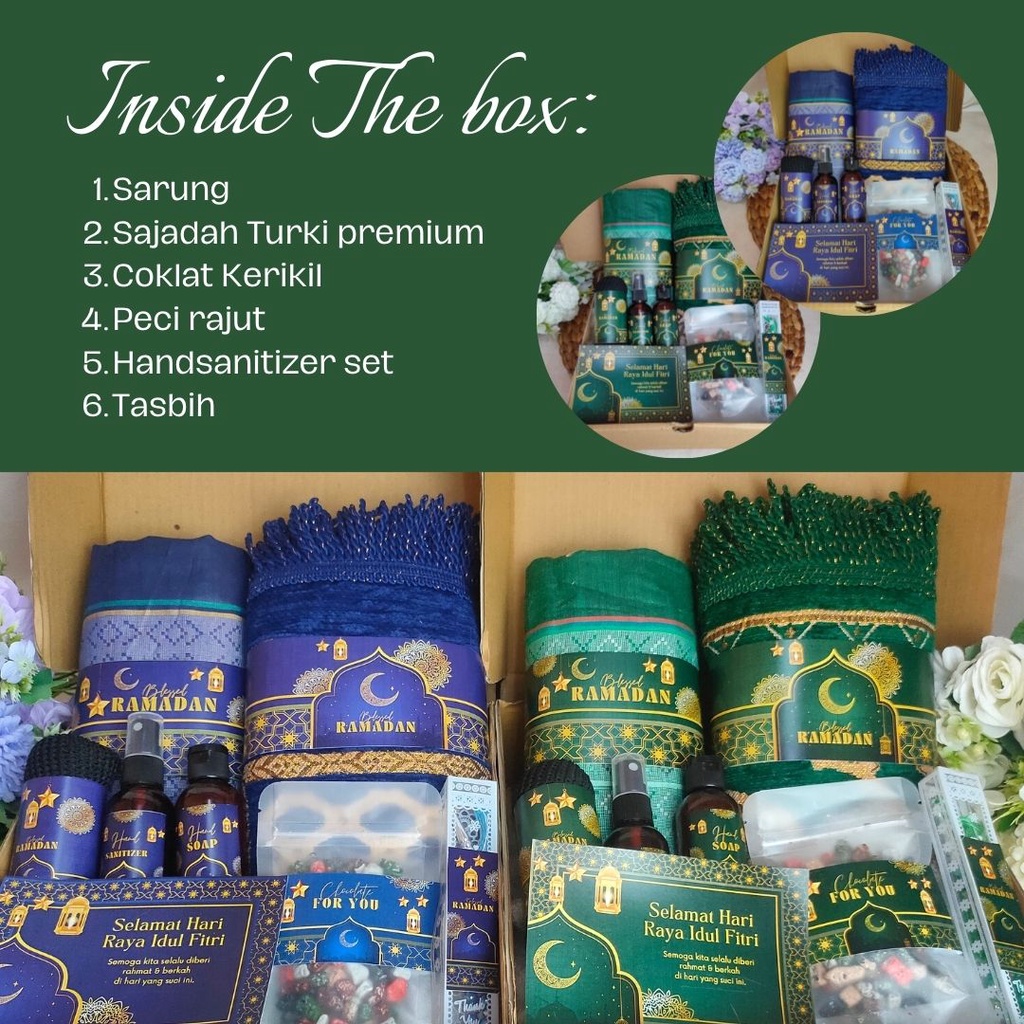 HAMPERS RAMADHAN SAJADAH SARUNG HAMPERS IDUL FITRI PERALATAN ALAT SHOLAT SARUNG SAJADA