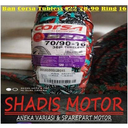 Ban Motor Merk Corsa Tubeless Tipe S22 Ukuran 70/90 Ring 16 Ban Motor Tubless