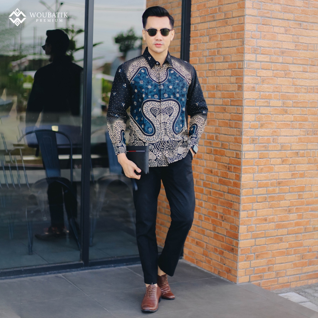 KEMEJA BATIK PRIA SLIMFIT LAPIS FURING ADHINATHA BAHAN KATUN LENGAN PANJANG MOTIF TAMBALAN TRUNTUM BERAS WUTAH