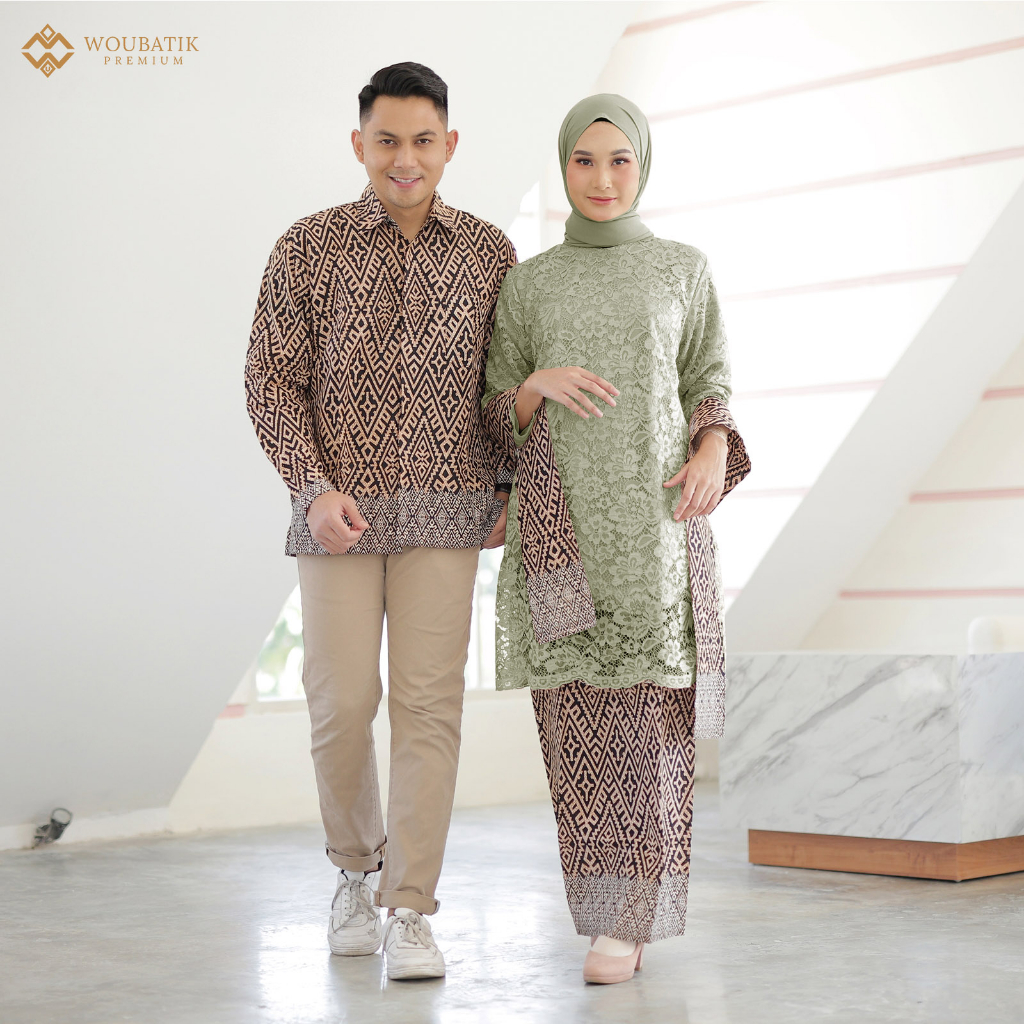 KEBAYA BATIK COUPLE LASKITA WARNA SAGE GREEN BAHAN KATUN PRIMA ATASAN BROKAT ROK SPAN PINGGANG KARET ALLSIZE