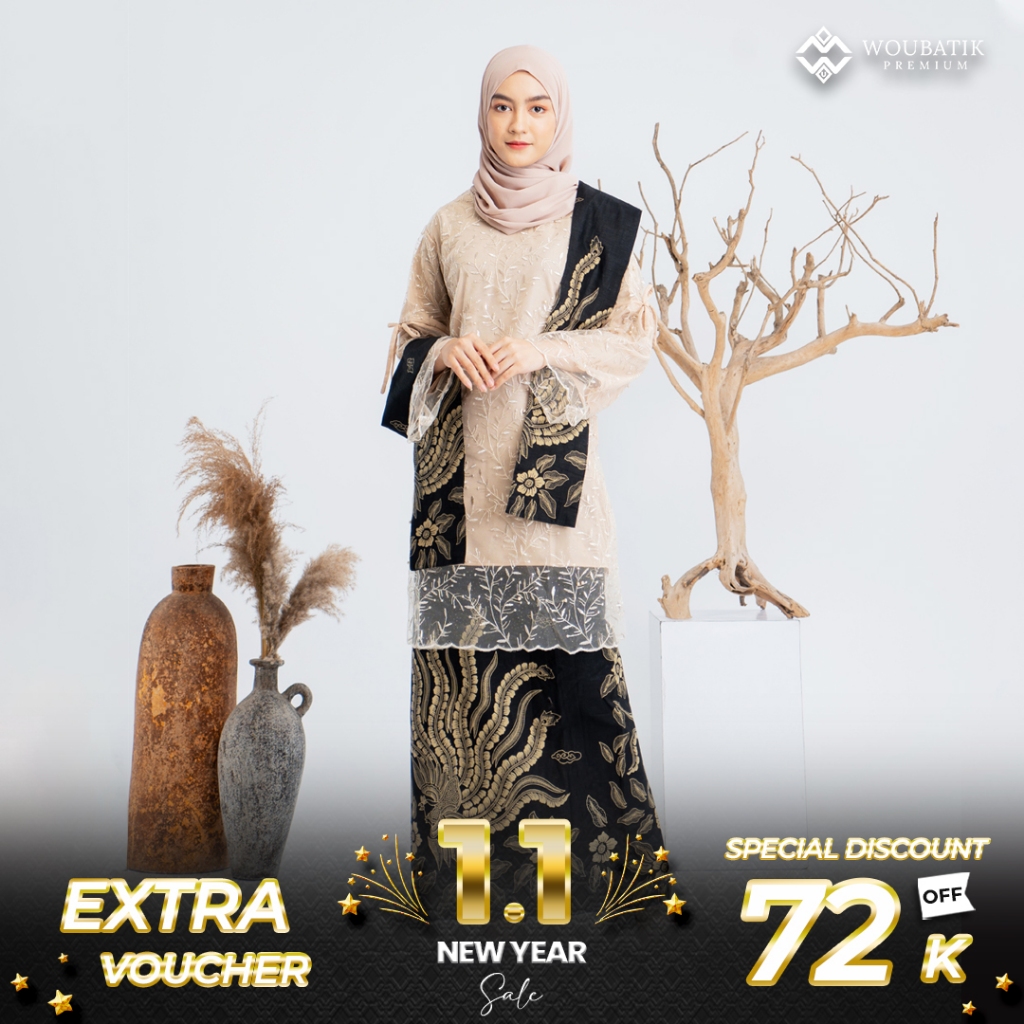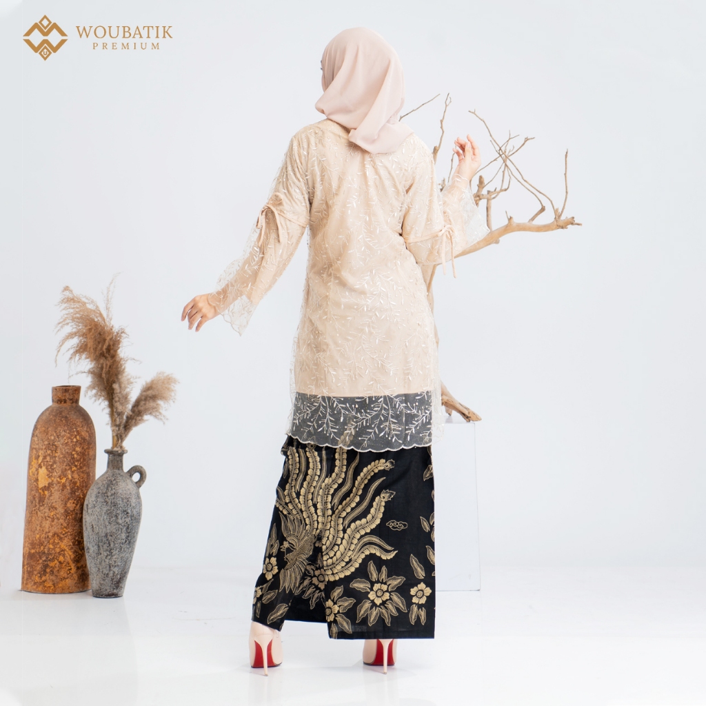 KEBAYA BATIK NABIA KATUN PRIMA ATASAN BROKAT ROK SPAN PINGGANG KATUN ALLSIZE